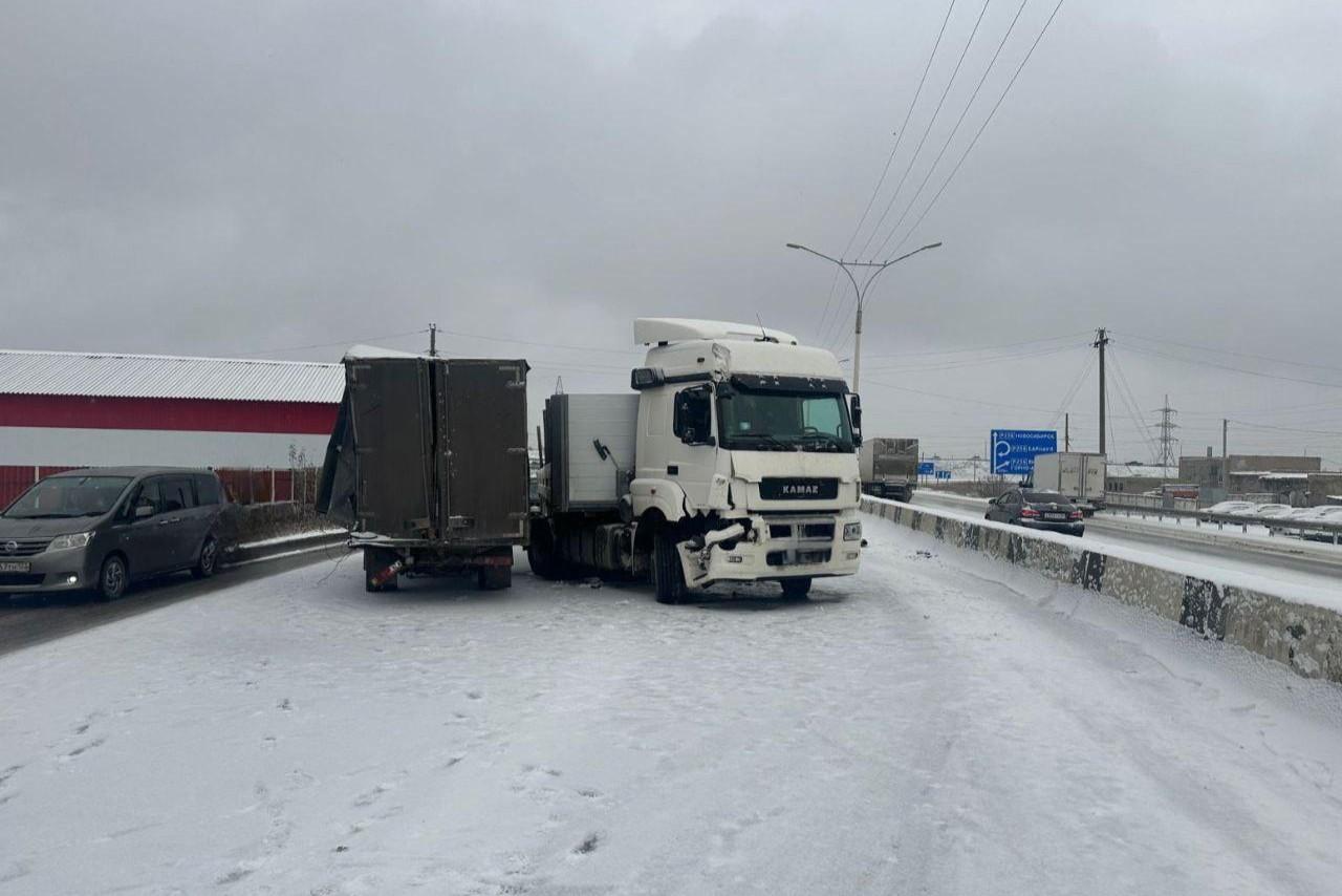 Сразу пять машин. В пригороде Барнаула случилось два массовых ДТП. Фото и видеоПрошедший снегопад вызвал коллапс на дорогах